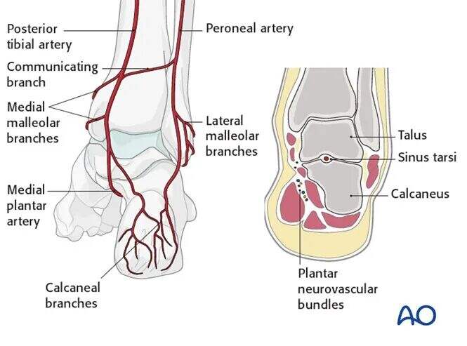 Deltoidna veja zadnje tibialne arterije mora biti ohranjena. Gre za kritično vhodno točko za preskrbo talusa s krvjo, zato medialna maleolarna osteotomija uspešno zaščiti preskrbo talusa s krvjo.